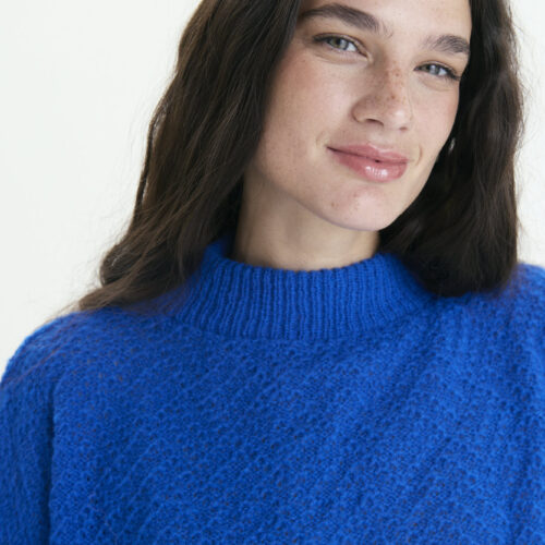 El cuello en punto elastico te estiliza y lo amplio de la prenda , te queda perfecto !