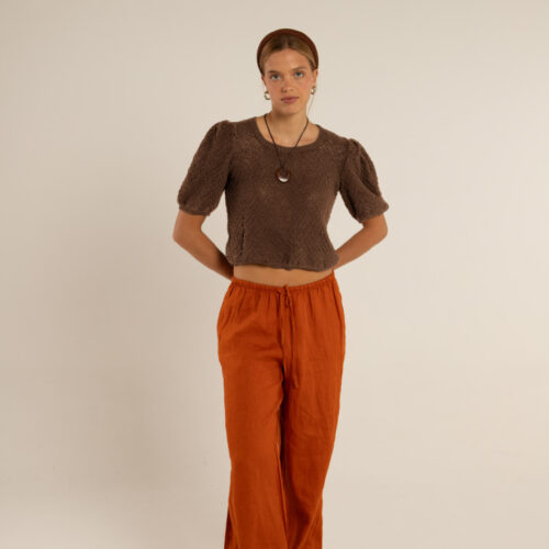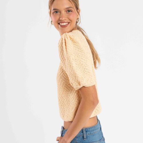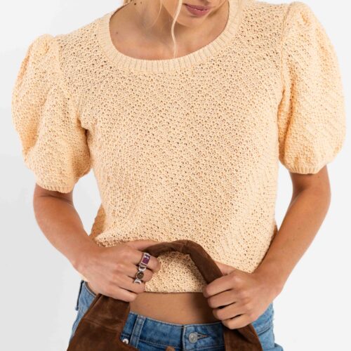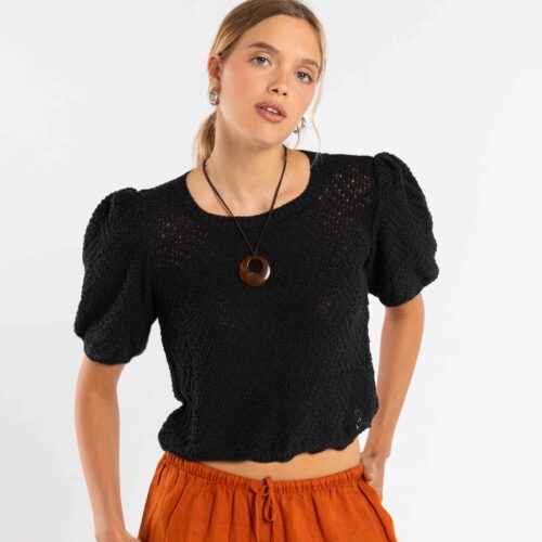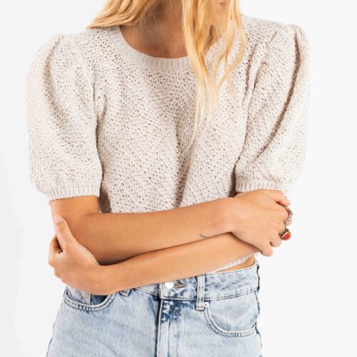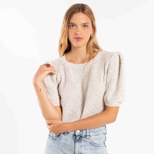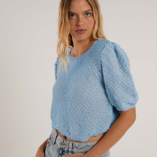 Tejido en maquina manual familiar, cerrandola a mano , toda en punto relieve retenido , mangas con tablas en hombros.