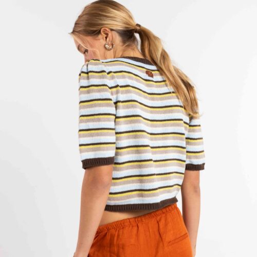 Tejido en maquina manual familiar , en 5 colores de hilos cambiandolos a mano , mangas con tablas en hombros.