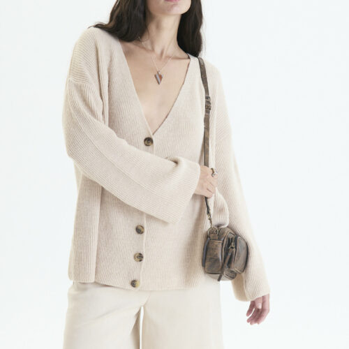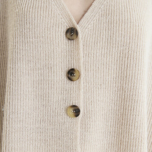 COMPOSICION: Mohair 100% ( lana oveja refinada) , botones de pasta tonalidad tostado