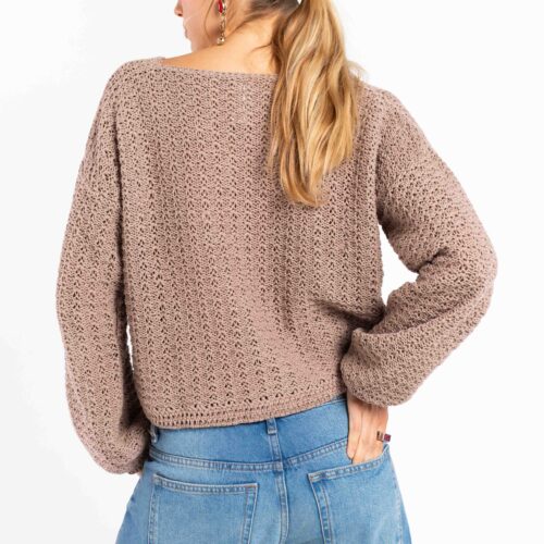 Tejido en maquina manual familiar , en punto relieve retenido , y puños tejidos en crochette