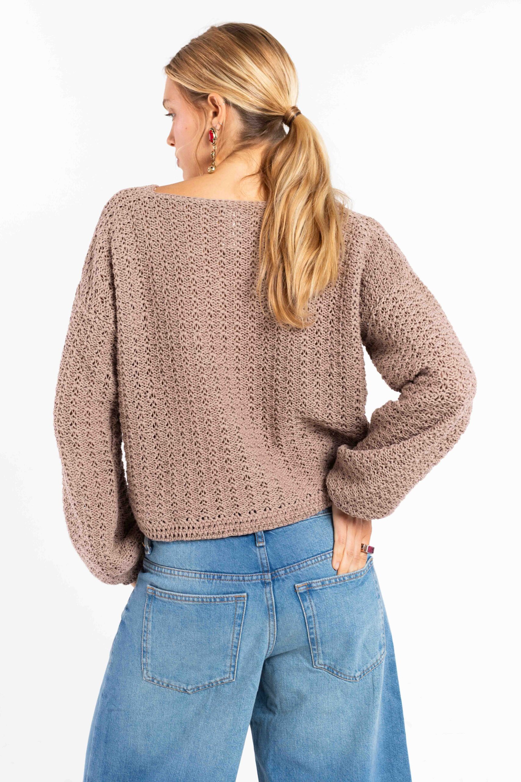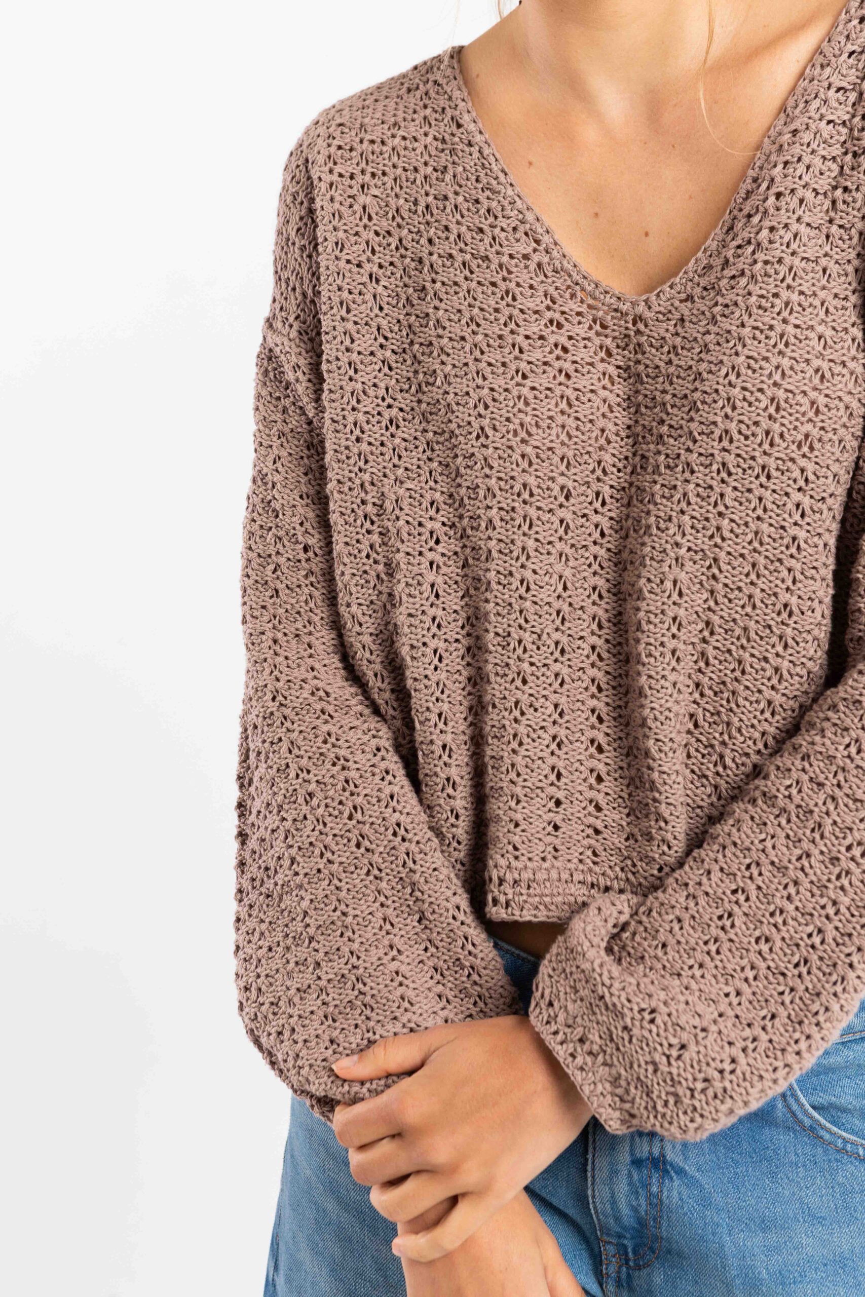 Tejido en maquina manual familiar , en punto relieve retenido , y puños tejidos en crochette